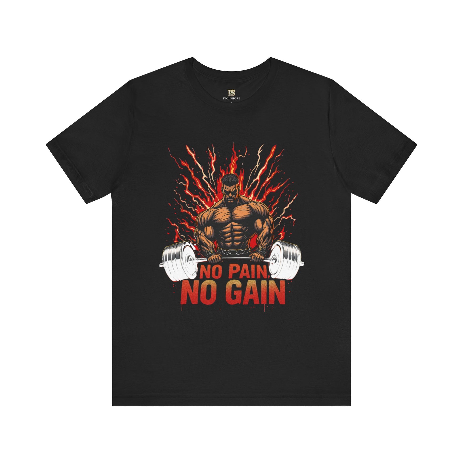 Elevate your casual wardrobe with this stylish Unisex Jersey Short Sleeve Tee. Made from 100% Airlume combed and ring-spun cotton, this lightweight shirt is soft, breathable, and perfect for layering. Its retail fit makes it a versatile addition to any outfit, suitable for both casual and semi-formal settings. The classic crew neckline adds a timeless touch, allowing you to dress it up with accessories or wear it comfortably on a laid-back day. Ideal for fitness enthusiasts, this tee embodies a motivational vibe with its striking ‘No Pain No Gain’ design. Perfect for birthdays, gym anniversaries, or just a casual day out, it's a statement piece that resonates with active individuals. Show off your dedication to fitness and style while enjoying the comfort and quality this tee offers.
